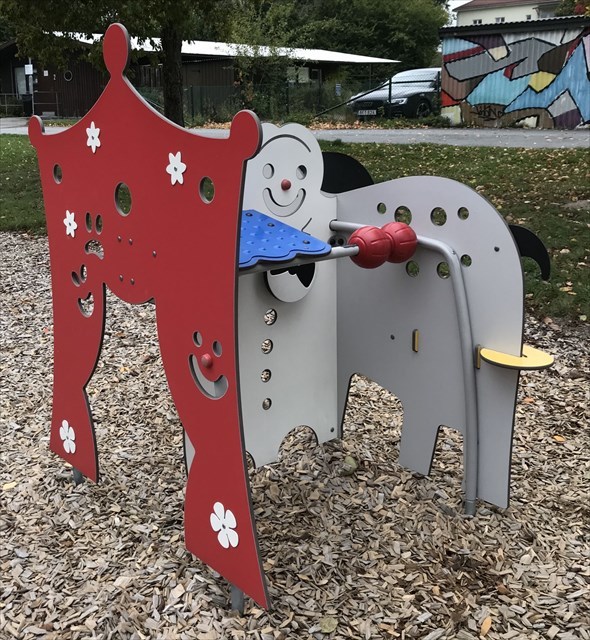 Steg 9 - Djurens lekplats - Hur många djuransikten/djurtavlor finns på den stora klätterställningen/lekhuset? = I