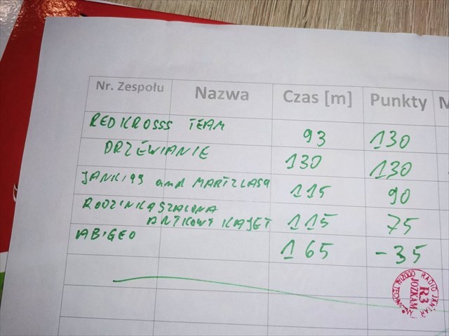 Dołączam obiecane wyniki. Gratuluje tym, którzy nie dali się nabrać na punkty mylne i tym którzy pokonali trasę!