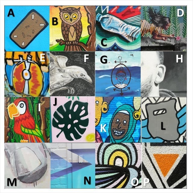 Achtung: Offensichtlich gibt es mehr Fotos/Buchstaben als Wegpunkte. Bei allen Fotos, die nicht identifiziert werden können, ist der Buchstabenwert des jeweiligen Buchstabens auf dem Foto einzusetzen.