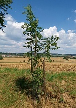 In 2004, however, it sprouted nicely and drove two trunks very high, from which I had a lot of joy again. But unfortunately, I took from the linden and neighboring oak tree the mesh off again and cried from mistake again… what an IDIOT!! But on August 22, 2004, I fenced both trees with a strong mesh, when they just started to sprout and in a few days they had quite large shoots and especially the linden caught one on the main trunk and pulls it to a height!! ... HURREY! The autumn inspection was fine and its main trunk reached the level of the mesh..parade! In the spring, before the eruption, I will cut lateral twigs and hopefully nothing will hurt it anymore and I will not do any more stupidities. Well, since then young linden has been doing very well and makes me very happy.