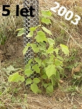V roce 2003 pěkně vyrašila z mnoha míst, leč ne příliš do výšky. Ještě jsem se jí rozhodl nestříhat, aby si udělala pořádnou kořenovou základnu. V průběhu roku si však vytvořila jeden hlavní kmínek, který byl nejvyšší a já z toho měl velkou radost. Leč když jsem tam jednou na podzim přijel, chtělo se mi brečet! Lipku požrala jakási zvěř (zřejmě srnky) a většina koncových pupenů byla okousána! Ach jo!!