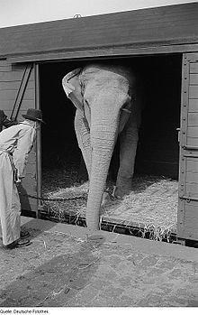 In Deutschland wurden 1925 für den Circus Krone ( I ) „Elefanten-Transport-Spezialwagen“ bei der Waggonfabrik Josef Rathgeber gebaut. Diese zunächst weißen, später gelben Wagen besaßen Überlänge, 31,5 m² Ladefläche und hatten gegenüber normalen gedeckten Güterwagen zwischen den Achsen einen tiefer liegenden Boden sowie große Schiebetüren. Die Wagen waren als Privatgüterwagen und zunächst bei Deutscher Reichsbahn, später bei der Deutschen Bundesbahn (DB) mit Heimatbahnhof München Hauptbahnhof eingestellt. Sie konnten bis zu fünf Elefanten aufnehmen. Nach dem Zweiten Weltkrieg wurden zwei dieser Wagen verschrottet, da kleinere Elefanten auch in normalen Güterwagen untergebracht werden konnten. Lediglich für die größten Elefanten wurde ein Exemplar bis zum Ende des Bahntransports beim Zirkus Krone im Jahr 1999 vorgehalten, das bei der DB zuletzt unter der Gattungsbezeichnung Hkko lief. Dieser Wagen hatte ursprünglich die Betriebsnummer B, später S und T, und ist museal erhalten. Quelle: wikipedia
