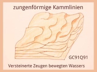 Schaut euch die versteinerten Spuren des bewegten Wassers genau an und beantwortet dann bitte vor dem Loggen folgende Fragen: