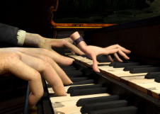Music accompanies the digitalised paintings and towards the end, as the artist slowly sinks into his own personal madness, the accompaniment is Handel's 'Sarabande' ('La Folia').