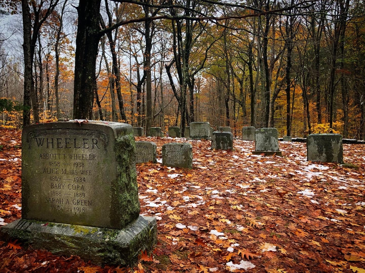 The stories that circulate around Friends Cemetery are extreme, including the fact that the gates are one of a series of portals to hell, that Satanic rites are regularly held within its stone walls, and that someone committed suicide in a tree near its gates. In reality, the wilderness cemetery is small, ordinary, and well kept. Its few sparse groups of headstones are set neat, clean, and even in the ground. Some of them date back to the 1700s, but are so well-tended that they seem newer. A set of four granite posts delineate the site of an old meeting house.