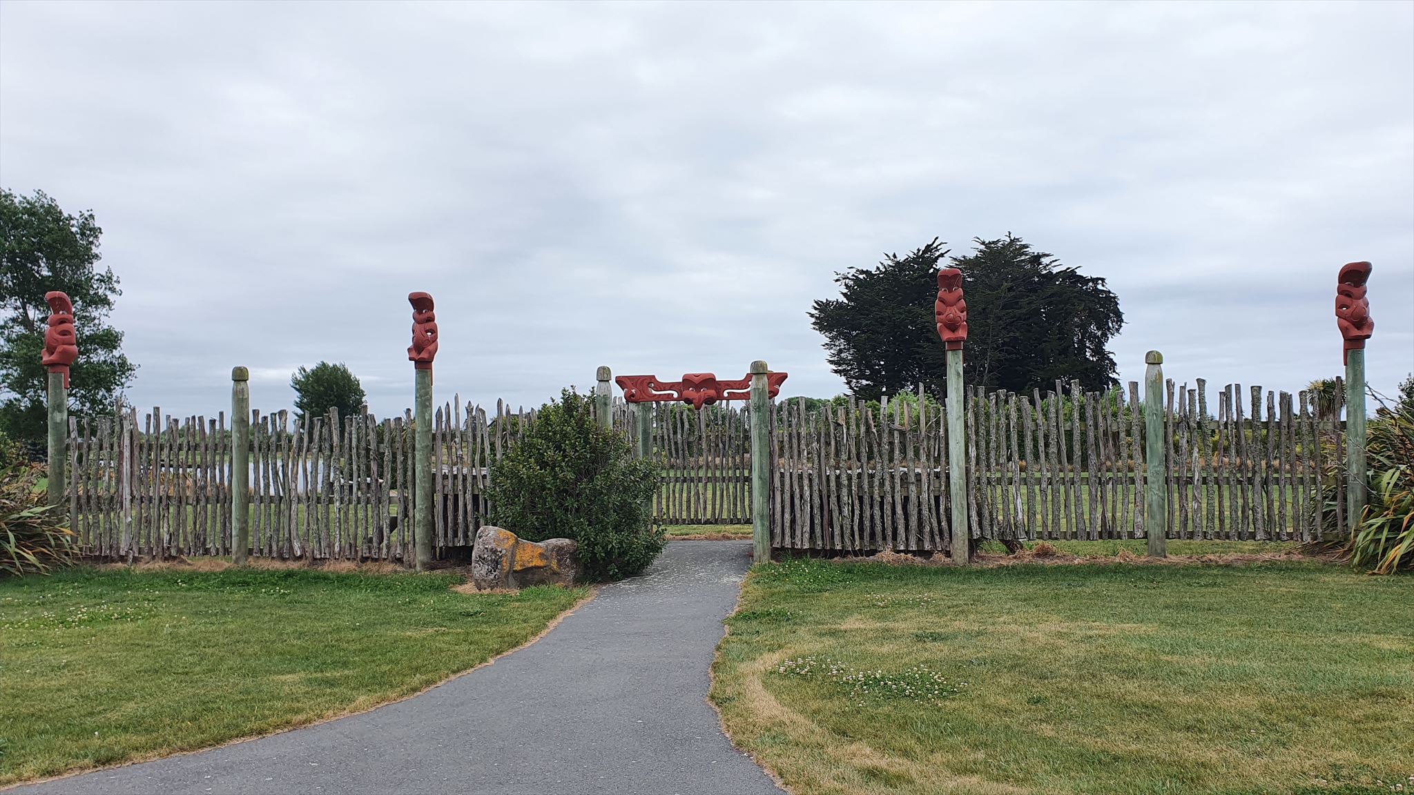 At GZ there is a reconstruction of the palisade wall that would have acted as the entry point to the pā (Figure 2). This wall has been modelled on the row of postholes uncovered during the excavation. Large boulders can also be seen about the site, these mark the locations where kōiwi (human remains) were recovered. The waka landing site can also be seen down by the channel behind the seats within the pā.