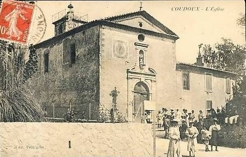 La naissance des hameaux du Grand et du Petit Coudoux, au XVIème siècle est due au déplacement de certains habitants de Ventabren pour se rapprocher de leurs champs. Ces deux hameaux, bâtis entre Ventabren et La Fare, étaient distants de moins de 800 mètres. Leurs habitants ne cessaient d'entretenir des relations suivies avec Ventabren, notamment au point de vue du service religieux, de l'état civil et des sépultures. Mais l'éloignement, le mauvais état des routes et l'absence de pont sur le Malvallat rendaient les trajets difficiles. Les "coudouciens" se plaignaient de ne pouvoir assister aux cérémonies religieuses ou de devoir faire la pénible ascension du village, distant d'une lieue et demie. Dès 1709, l'idée d'une église, à mi-chemin des deux hameaux, germa dans l'esprit des habitants. Il formèrent ainsi une vraie communauté qui aboutit, en 1950, à la création de la commune de Coudoux.