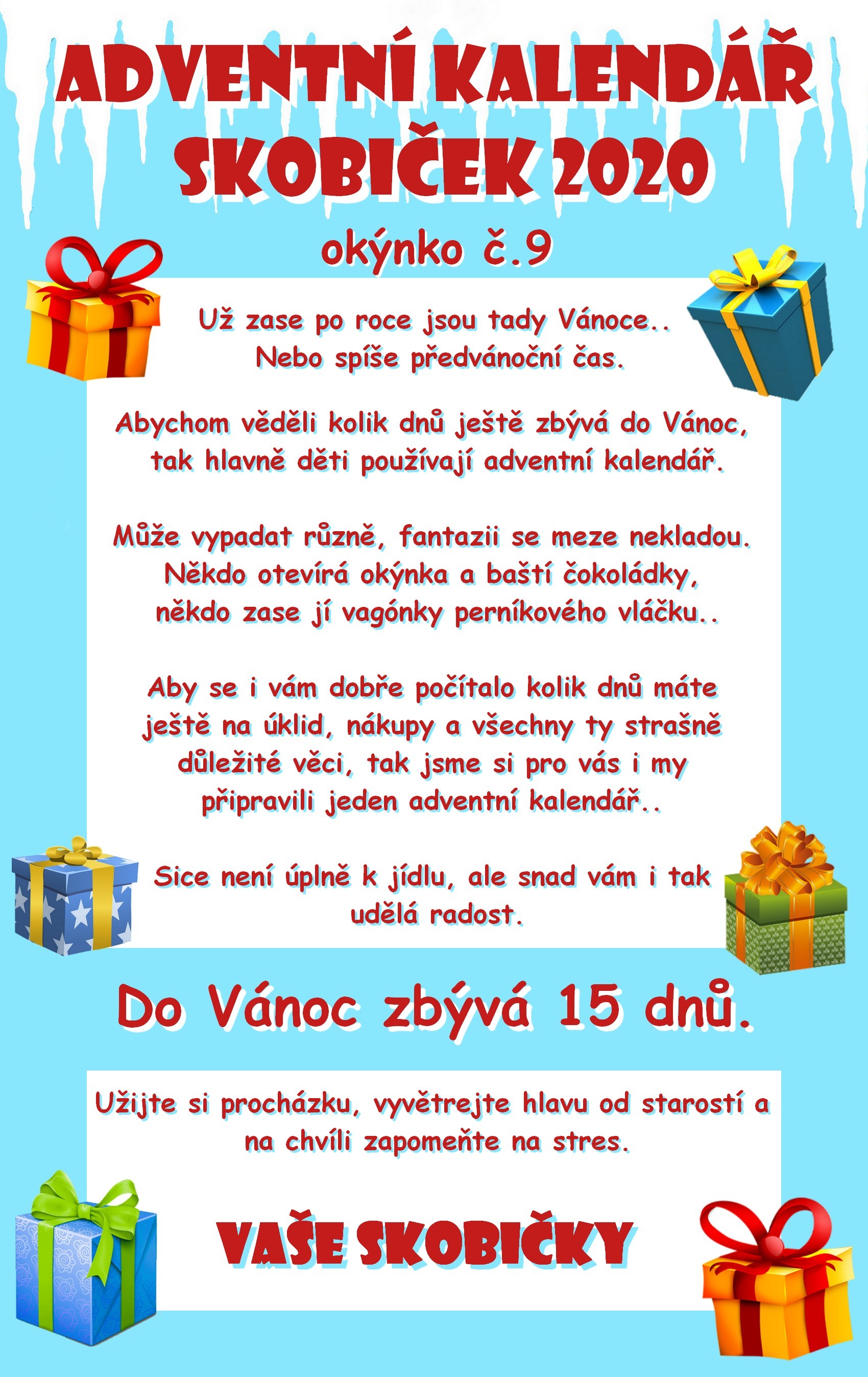 Skobičky: Je nám líto, ale rozhodli jsme se ztracené krabičky neobnovovat. Celkem už se z adventního kalendáře Skobiček 2020 ztratilo 12 kusů, 5 jsme obnovili v neděli 3 ledna a během týdne se ztratilo dalších 7 krabiček.