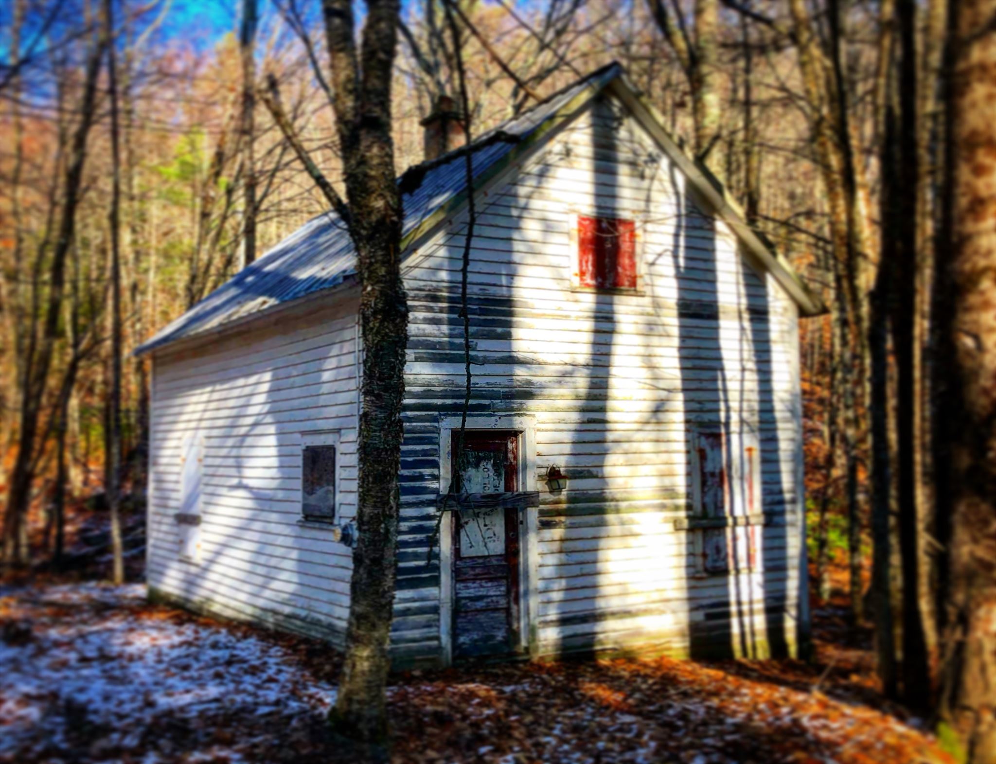 The abandoned mining village of Davis is the location of the Davis Pyrite Mine in Rowe, Massachusetts. Once the largest iron pyrite-mine in the state, Davis grew to be a decent sized mining village at the beginning of the Second Industrial Revolution (1870–1915). But, in 1911, a non-fatal collapse of the mine due to “poor mining practices” ended the nearly 30-year run. By 1937, the mining camp had faded, and all that remained were a blacksmith shop and about 150 cellar holes. An old, boarded up building sits at the trailhead, the site of the former Davis Mine Schoolhouse. The cache is a small lock & lock, close to the parking area.