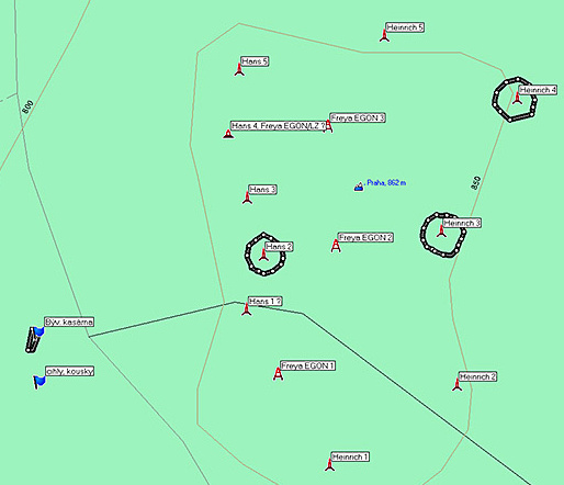 Keška vás přivede na západní okraj náhorní plošiny kopce Praha, kde stojí neobvyklá kamenná stavba beze střechy, nesoucí stopy po masivní ale spěšné betonáži a se zalomeným vchodem. První dojem by sice mohl svádět k tomu, že se jedná o nějakou stavbičku s elektronikou příslušející k ostatním radiolokátorům, ale některé nápadné prvky prozrazují, že tomu tak není. Střecha budově nejen že chybí, ale podle všech známek na ní nikdy nebyla. Také stavební sloh, neznající okna a kombinující poněkud chaoticky kamenné zdivo s betonem litým do nedokonalého bednění, ukazuje na to, že máme co do činění s klasickou ochrannou zdí okolo pozice zaměřovače Freya. Šlo o co nejpevnější rychle zbudovanou ochranu stojanu a kabiny obsluhy, takže nad věnec zdi čněl pouze nosník se zářiči antén.