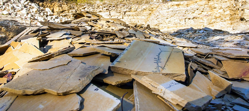 Bei Sammelstellen mit aufgeschüttetem fossilienhaltigen Bruchmaterial liegen bereits einzelne Schichtpakete herum. Die Schichten öffnet man durch vorsichtiges Aufklopfen: Den Meißel an mehreren Stellen ringsherum ansetzen, damit sich die Platten vollständig voneinander trennen und nicht brechen. Wenn man die Platten dann mit leichtem Druck auseinander zieht, sollte man auch auf ganz kleine Erhebungen achten: Sie weisen auf Versteinerungen in der darunterliegenden Schicht hin. Und nicht vergessen, Werkzeug ist mitzubringen.