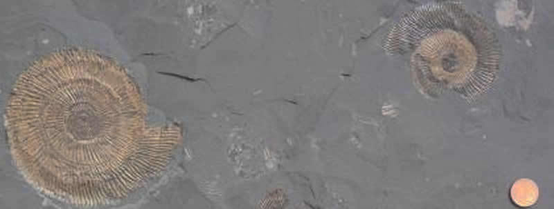 Fossilien sind versteinerte Reste von Pflanzen oder Tieren aus früheren Erdzeitaltern, die entweder lebend oder kurz nach ihrem Tod von Material bedeckt (“eingebettet”) worden sind. Dies konnte an Ort und Stelle oder nach einem Transport auch anderswo geschehen sein. Eine wesentliche Voraussetzung für die Erhaltung der vorwiegend harten Teile eines Tieres oder einer Pflanze ist, dass der zur Zersetzung nötige Sauerstoff fehlt. Diese Bedingung kann in einem sauerstoffarmen Milieu oder bei hoher Sedimentationsrate (schnelle Einbettung) gegeben sein. Im weiteren erdgeschichtlichen Verlauf hat dann die Überlagerung durch Sedimente oder Gesteinspakete Druck- und Temperaturbedingungen geschaffen, die durch einen Stoffaustausch zur Umwandlung der chemischen Zusammensetzung der fossilen Reste, also zur eigentlichen Versteinerung geführt haben. Besondern häufige Fossilien sind Ammoniten. Mit etwas Glück kannst du sie sogar auf Steinen entdecken, die an jedem Feldrand liegen können. Ammoniten bevölkerten 350 Millionen Jahre lang alle Meere und werden als marine Kopffüßer bezeichnet. Sie lebten auch zur Zeit der Dinosaurier und sie starben etwa zur selben Zeit wie sie aus, vor etwa 65 Millionen Jahre, gegen Ende des Erdmittelalters. Sie umfassen 12000 Arten, die sich in etwa 1500 Gattungen aufteilen.