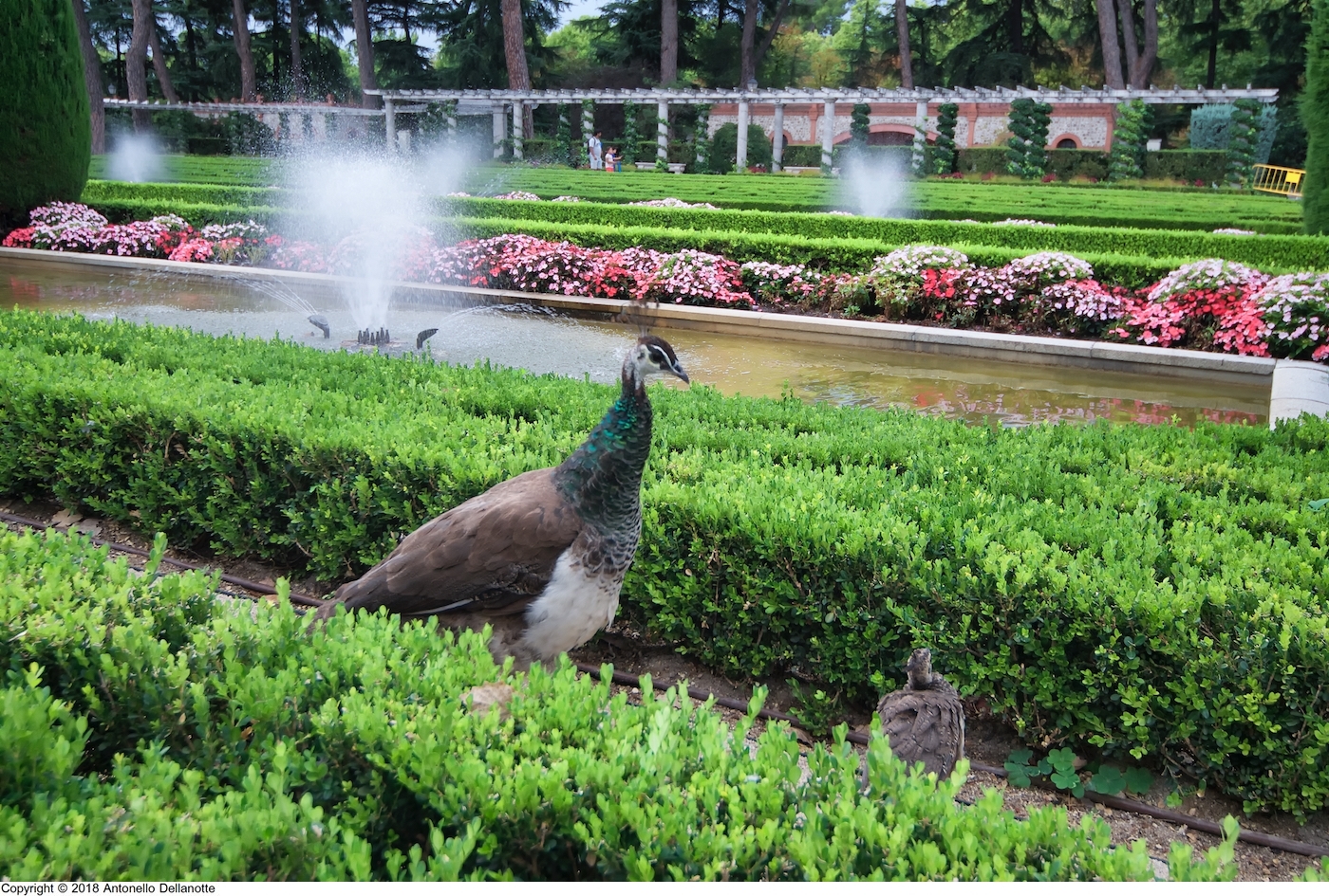 Todo el perímetro de los jardines está vallado y dentro del recinto habitan numerosos pavos reales así como patos y una colonia de gatos.