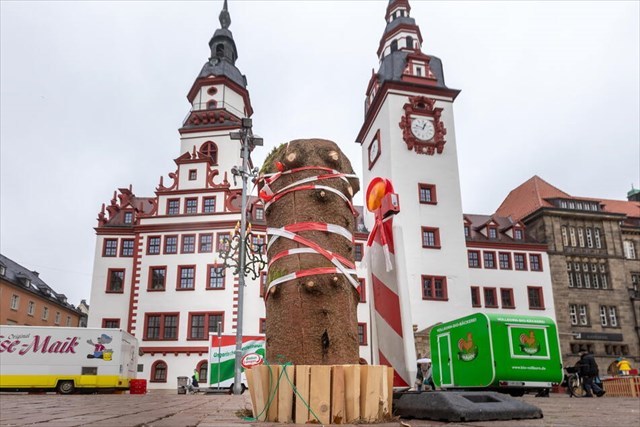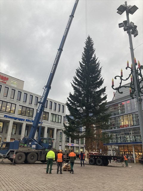 Beide sind wir im Forstbezirk Eibenstock aufgewachsen. Mit meiner Größe von 26 Metern bin ich nicht ganz so hoch wie meine Verwandten, welche in den vergangenen Jahren auf dem Marktplatz getrohnt haben. Ab dem 1. Advent habe ich nun mit meinen rund 800 Lichtern versucht trotz der schweren Zeit etwas weihnachtliche Stimmung in die Stadt zu bringen.