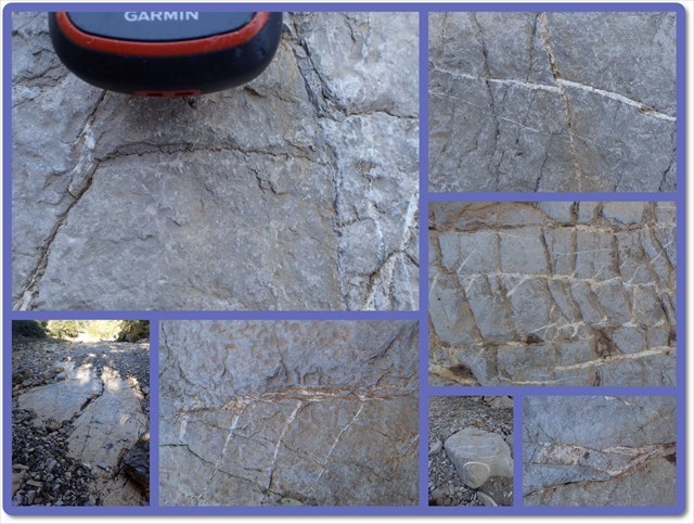 Cette dalle de calcaire est un condensé pour étudier la microtectonique, on y voit principalement des stylotithes, et des fentes de tension.
