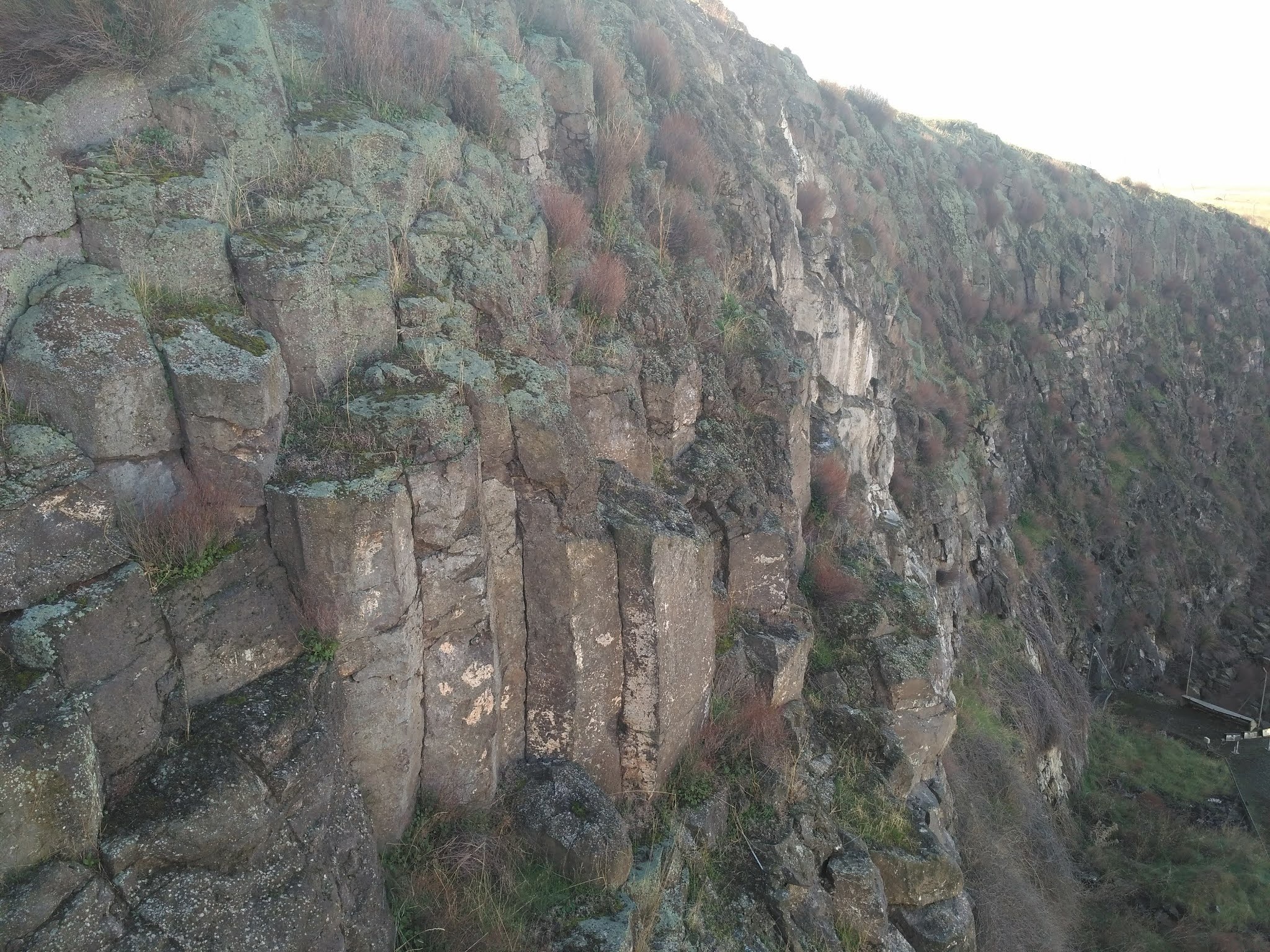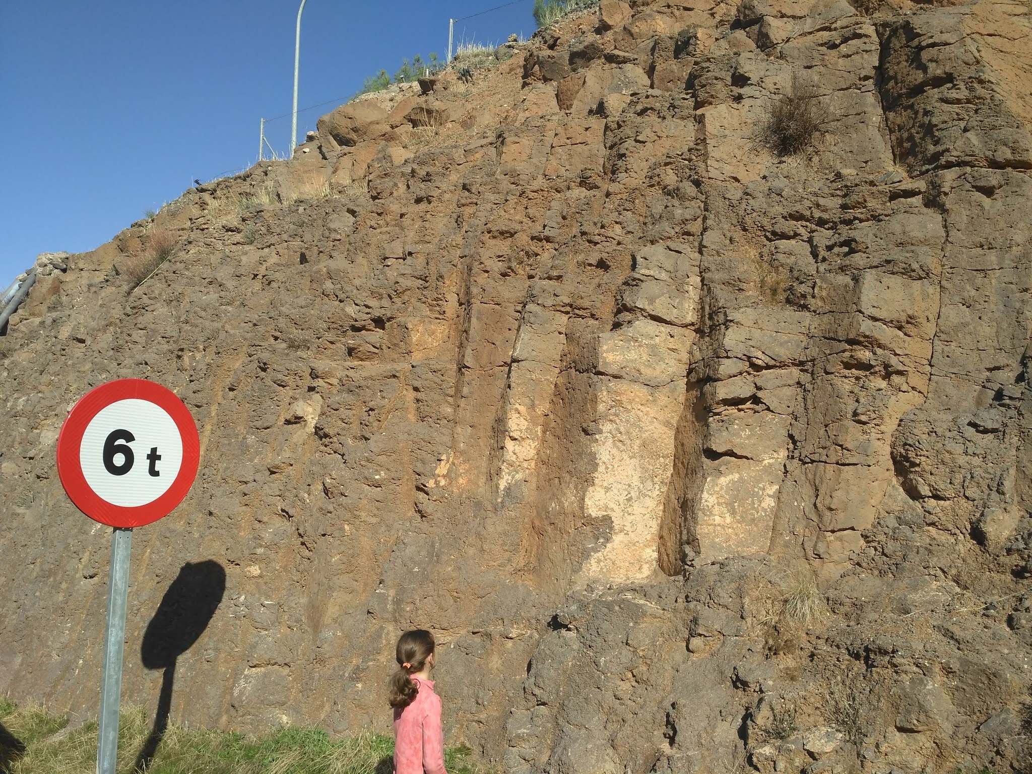 Para registrar este EarthCaché debéis llegar a las coordenadas principales, y responder correctamente a las siguientes preguntas. Allí se pueden ver estas columnas hexagonales (foto 1). También, se observan columnas en la trinchera de la carretera de acceso (waypoint foto 2).