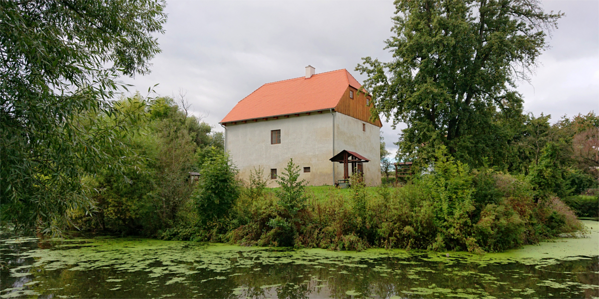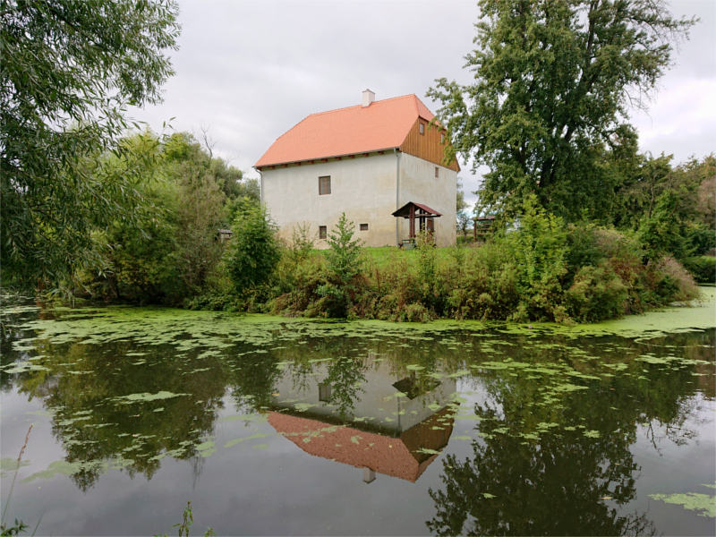 Pohled na hlubanskou vodní tvrz (září 2021)