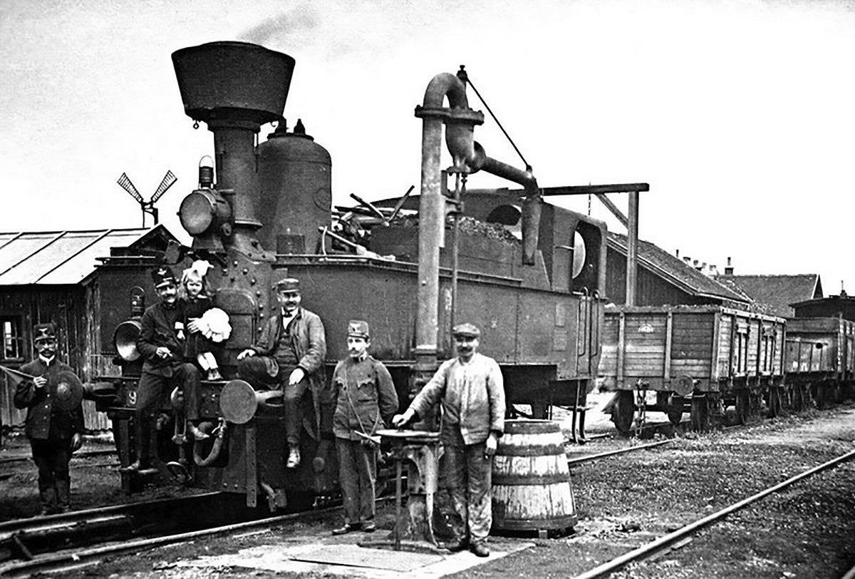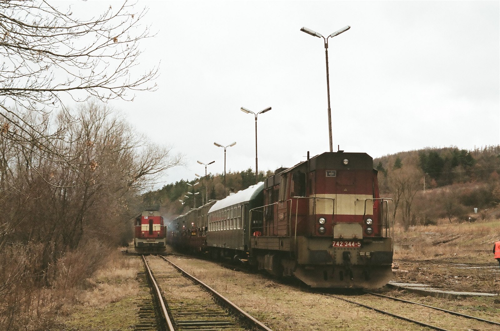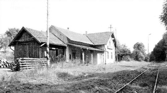 | Historická fotografie nádraží a osobní vlak v roce 1990 |