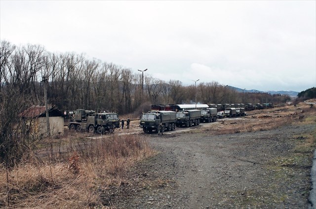 | Vykládka vojenské techniky ve stanici při cvičení NATO, 16. března 2009 |