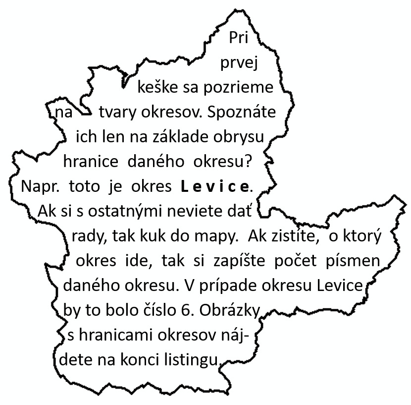 Na Slovensku máme 79 okresov v 8 krajoch. Touto minisériou 5 kešiek ich Vám chcem trochu priblížiť rôznymi otázkami či úlohami. Bude to zábava (aspoň dúfam) a naučíte sa možno niečo, o čom ste ani nevedeli.