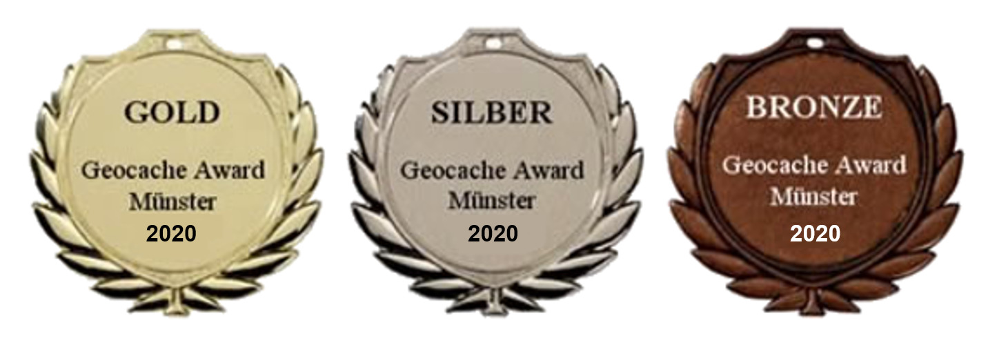 es ist wieder soweit: Nach einem weiteren Jahr wird ein weiteres Mal der Geocache Award für Münster gewählt! Aufgrund der aktuellen Pandemie-Situation findet somit keine Verleihung statt. Die Ergebnisse werden somit (wie früher) online über dieses Listing bekannt gegeben. Dafür gibt es jedoch wieder einen Tradi zu finden.