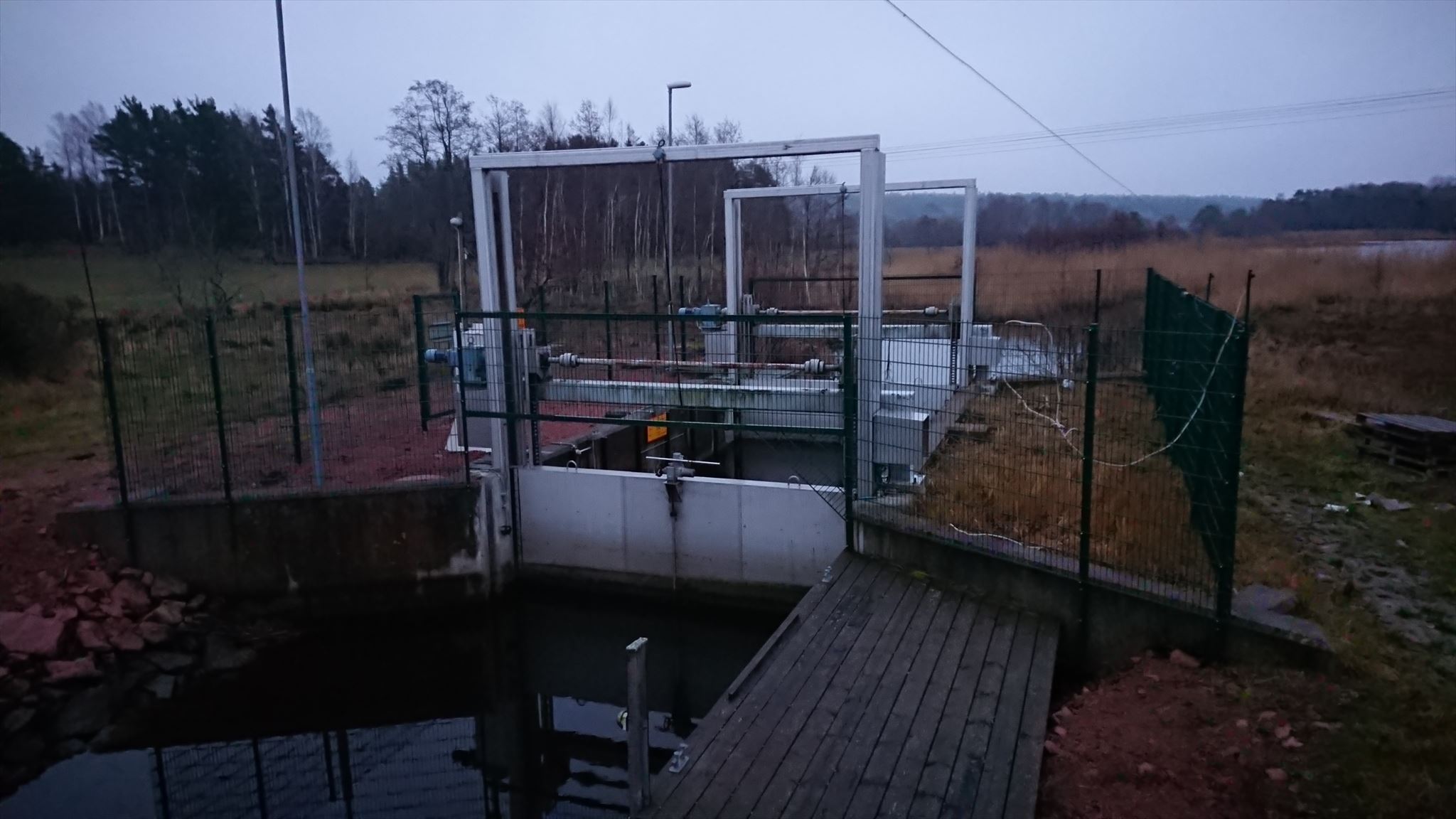 The lock was completed in 2006 and replaced a previous settling dam from 1997. The height difference of the lock at normal water conditions is about 0.2 meters. During the fish migration period, fish are automatically locked through the lock a few times a day.