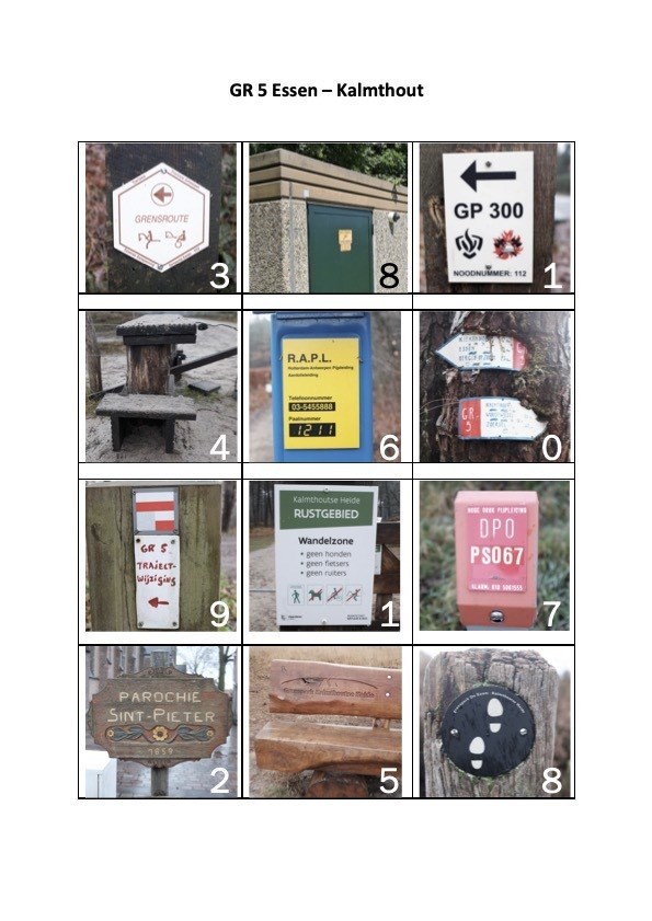De wit-rood bewegwijderde GR 5 is hét icoon van de Grote Routepaden. De route is meer dan 2000 km lang en loopt van de Noordzee tot aan de Middellandse zee. Deze multi volgt het traject van de GR 5 tussen het gehucht Hoek (Essen) en Kalmthout. De route is prima gemarkeerd: je volgt gewoon de typische wit-rode markeringen.