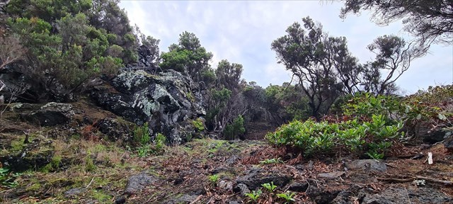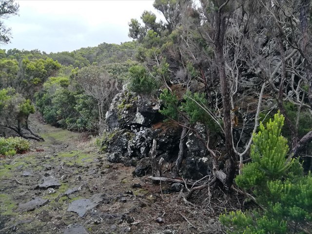 The trail “Mistério” takes you across a part of this lava field, showing you (small) lavatunnels, and predominantly aa-lava formations covered with a forest of mainly “insence” trees.