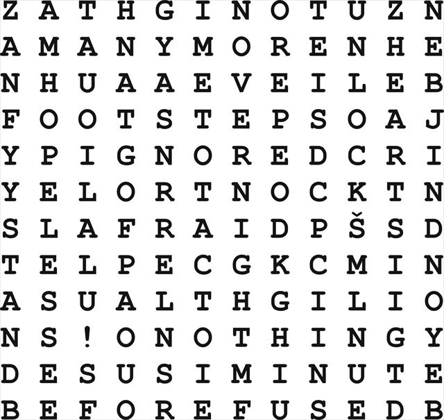 Aj ty si môžeš odpovedať. Ak potrebuješ hint, vylúšti osemsmerovku. Vyškrtávaj 23 aspoň päťpísmenových slov z piesne.