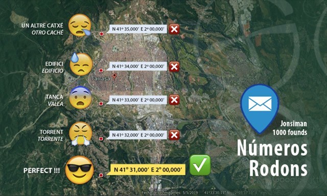 Aquest és un “concept” caché per celebrar que Jonsiman ha arribat als 1000 trobats. I hem colocat un letterbox cache en unes coordenades amb números rodons. Les seguents: