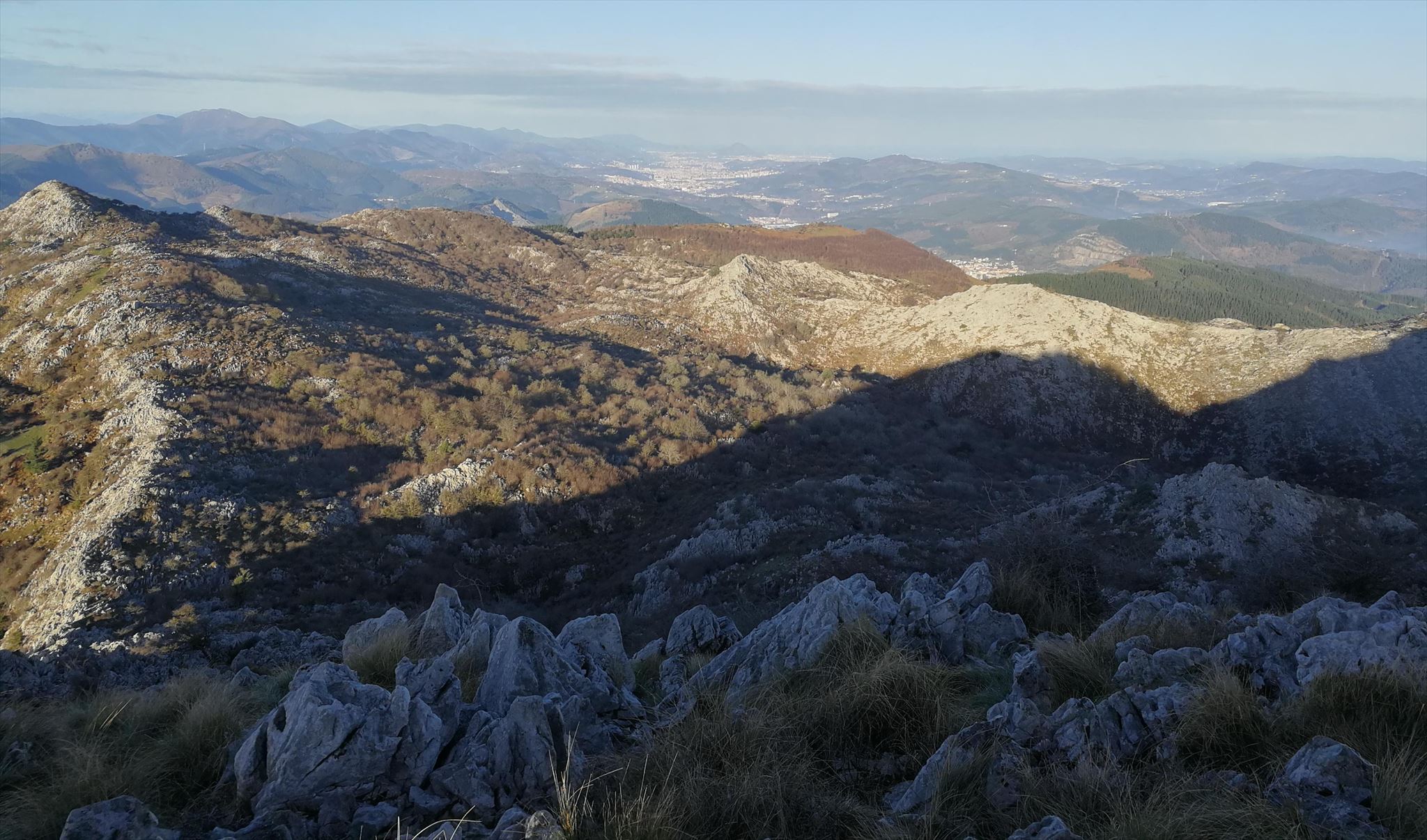 Las vistas desde la Sierra de Aramotz son magníficas, dominándose los perfiles del Duranguesado con su cumbre máxima Anboto y la torre del Udalatx. Se aprecia el Gorbea y las crestas de sus aledaños, Ganekogorta, Sollube, Bizkargi, Oiz y todo ese mar térreo y pétreo que forman las innumerables montañas de nuestra tierra.