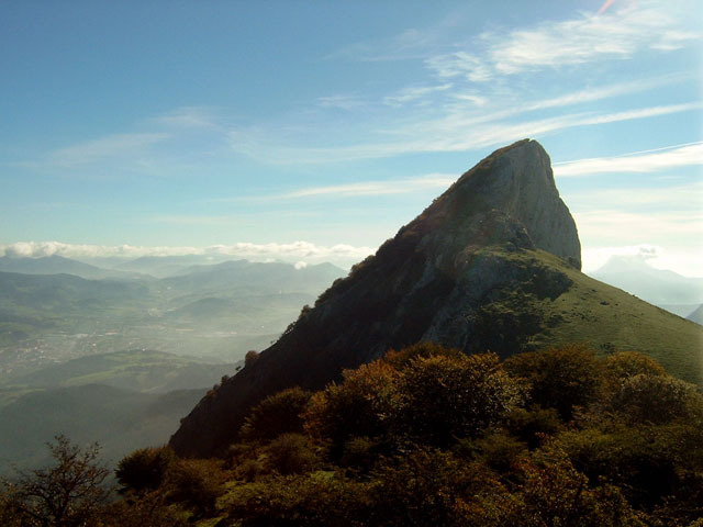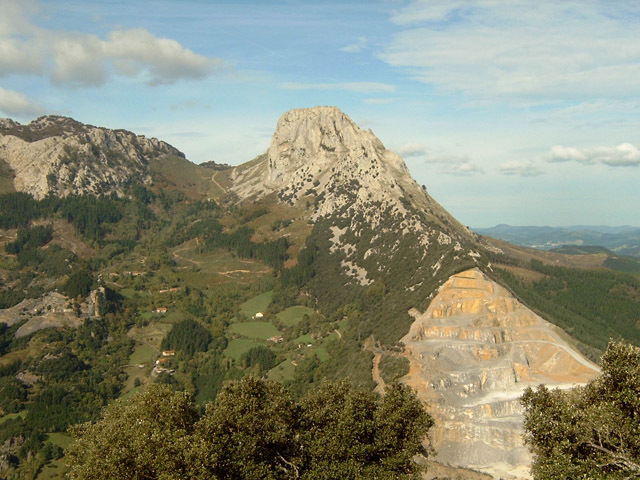 Pero esta bella montaña está amenazada por un violento cáncer que la consume día a día. Se trata de la cantera de Mañaria, que ya ha truncado parte de la cresta oriental. Es de esperar que la declaración de Parque Natural (Urkiola) detenga este irreparable deterioro, totalmente incompatible con una declaración de esa índole.