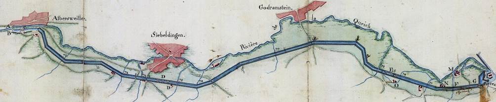 Zum Festungsbau in Landau wurden Unmenge Baumaterialien benötigt. Um die Mengen an Steinen aus dem Steinbruch in Albersweiler ins 7 km entfernte Landau zu transportieren, wurde eigens ein Kanal gebaut, der eine Breite von 13 Metern und eine Tiefe von fast 2 Metern hatte. Der Höhenunterschied von 20 Metern wurde durch 10 bzw. 11 Schleusen überwunden.
