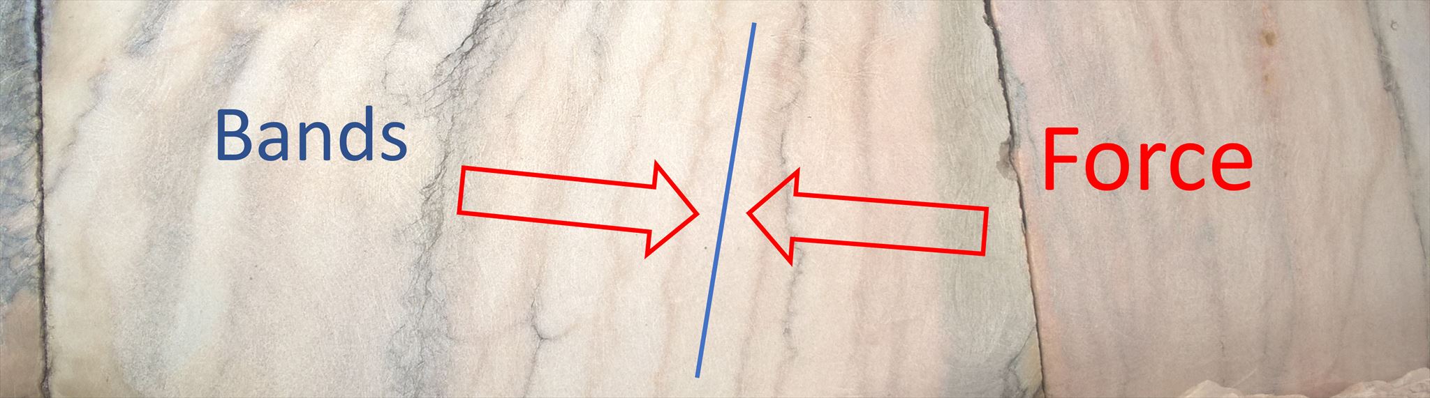 2) On the south facing side of the column, are the marble bands horizontal, vertical or diagonal? Was the force that gave rise to this alignment horizontal, vertical or diagonal?