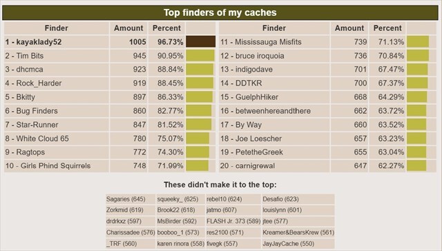 Top finders of our caches