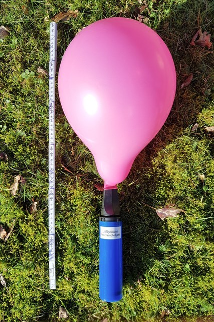 Statt eines Erstfindergeschenks möchte ich einen kleinen Wettbewerb starten. Du wirst in dem Cachebehälter einige Luftballons und eine Pumpe finden. Versuche einen Ballon auf maximale Größe aufzublasen, ohne dass er platzt. Danach fotografierst du das Ergebnis zusammen mit dem beiliegenden Zollstock (hier ein Beispiel). Jeder Finder hat allerdings nur einen Versuch. Wenn der Ballon platzt, war es eine Niete. Am 30.09.2021 werde ich alle hochgeladenen Fotos sichten und die Ballongrößen vergleichen. Der Geocacher mit dem größten Luftballon wird der Gewinner sein. Sollte es zwei oder mehr Ballons identischer Größe geben, entscheidet das Logdatum: das früheste Found-It-Log gewinnt. Der Gewinner kann einen größeren Meteoriten (15,5 g) oder fossile Fische sein Eigen nennen.