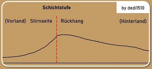 Bei einer Schichtstufenlandschaft unterscheidet man die Vorder- und Rückseite der Schichtstufe.