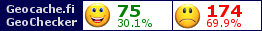 Laita ratkaistujen sanojen alkukirjaimet (9 kirjainta) järjestyksessä ABCDEFGHI tsekkeriin, niin saat kätköpurkin koordinaatit.