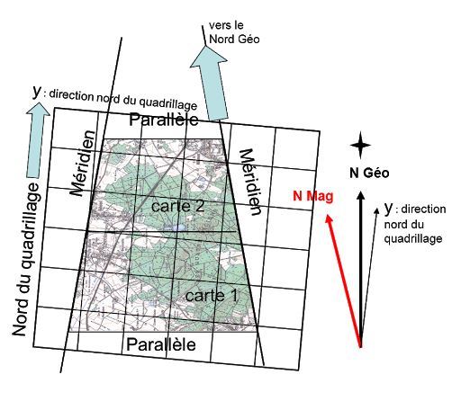 - Le nord du quadrillage (cartésien ou de la carte).
