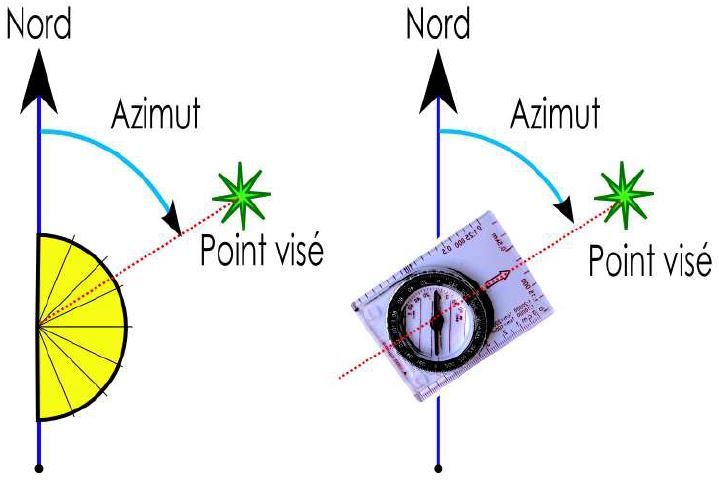 Lâazimut est lâangle que fait la direction de marche avec le Nord. Par exemple, azimut 0° : câest plein nord !