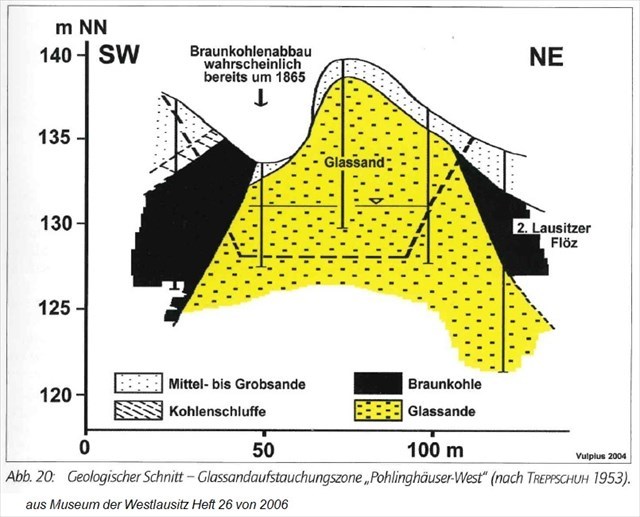 Durch die glazigenen Aufschiebungen kommen in diesem Gebiet auf engstem Raum Braunkohle, Glassande, Fein- bis Mittelsande und Kohlenschluffe vor.