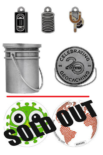 Amongst the swag in this geocache lay two coin prizes for the First and Second To Find (two geocaching accounts from different households please)--an Original Stash Bucket 4-geocoin set and an out-of-print Green Virus 2020 geocoin from Scotland.