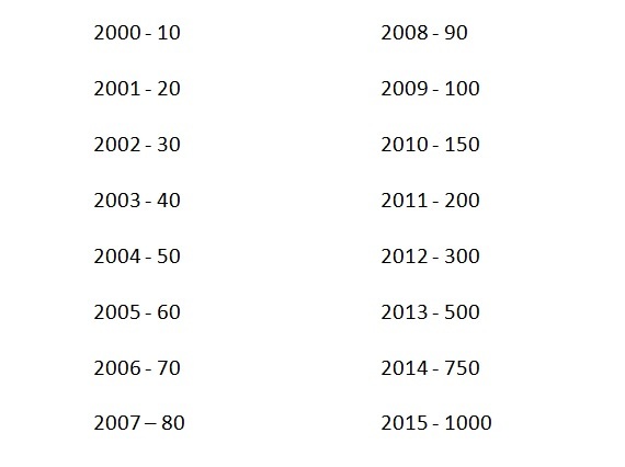 • In order to log this cache you must have found the required number of caches for each year that caches were placed from the year 2000 up to and including the year 2015.