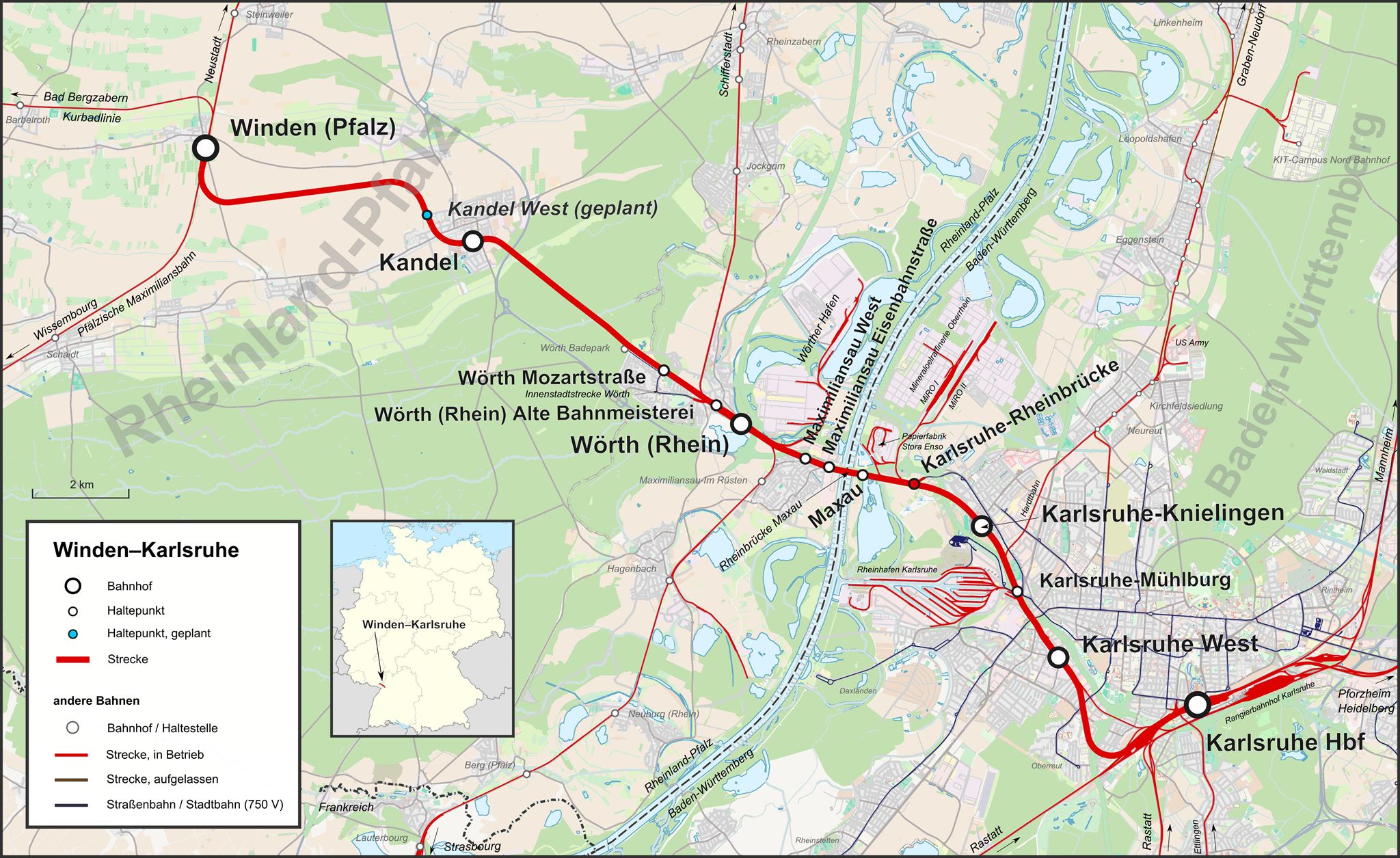 Die Bahnstrecke Winden–Karlsruhe ist eine Eisenbahnhauptstrecke in Baden-Württemberg und Rheinland Pfalz, die in ihrer jetzigen Form seit 1938 besteht und zwischen Wörth und Karlsruhe elektrifiziert ist. Der heutige Abschnitt Winden–Wörth wurde 1864 eröffnet. Ein Jahr später folgte der Lückenschluss über den Rhein zur seit 1862 existierenden Maxaubahn. Letztere wurde im Zuge der Verlegung des Karlsruher Hauptbahnhofs innerhalb der Fächerstadt neu trassiert. Ebenfalls neue Streckenabschnitte entstanden zwischen Wörth und Mühlburg vor allem in Zusammenhang mit der Inbetriebnahme einer festen Rheinbrücke. Durch letztere Maßnahme stieg ihre Bedeutung maßgeblich an. Heute ist die Strecke zusammen mit dem Abschnitt Neustadt–Winden der Pfälzischen Maximiliansbahn als Kursbuchstrecke 676 verzeichnet. Zudem verkehren zwischen Wörth und Karlsruhe mehrere Linien der Stadtbahn Karlsruhe.