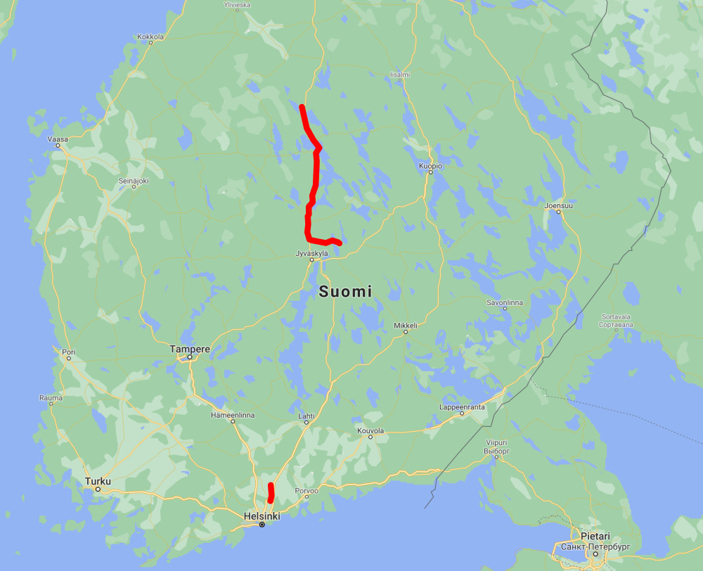 Näiden klassikkoreittien lisäksi Suomesta löytyy varmaan lukuisia tunnettuja liikennereittejä. Kuten esimerkiksi alla olevan kuvan reitit. Kirjoita molempien reittien paikkojen nimet peräkkäin kuten ne kuuluu - väliviivoilla erotettuina. Kumpi vain reitti voi olla ensimmäisenä, checkeriin kelpaa molemmat vaihtoehdot.
