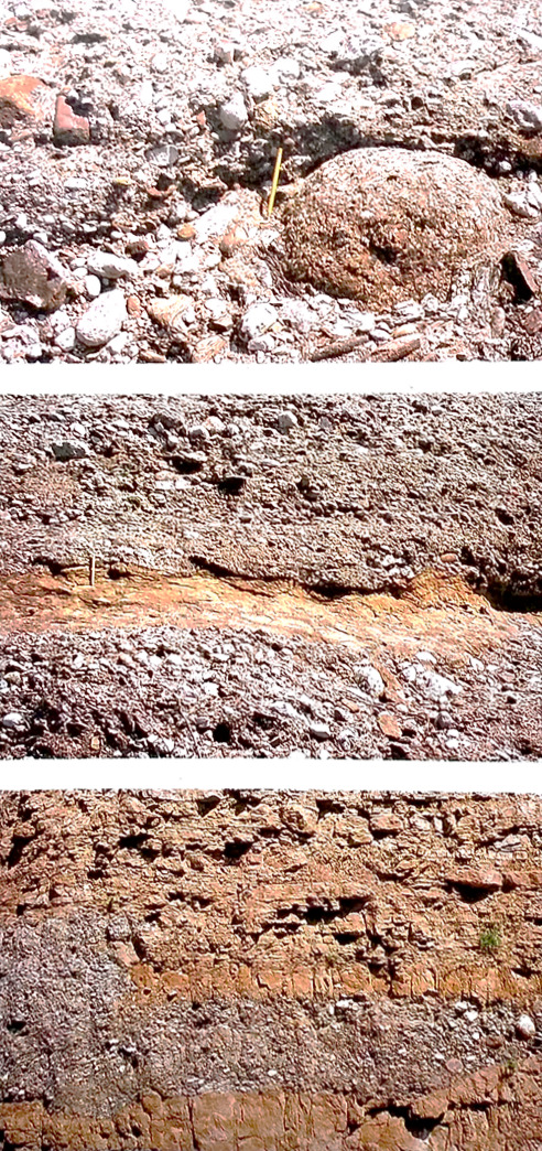 Des del massís de Sant Llorenç i a mesura que ens anem endinsant cap a la Depressió Central, les capes conglomeràtiques van reduïnt el gruix fins a formar uns tascons englobats per sediments més gresosos i lutítics, que corresponen a dipòsits més allunyats dels cons de dejecció que formaven les sèries més grolleres.