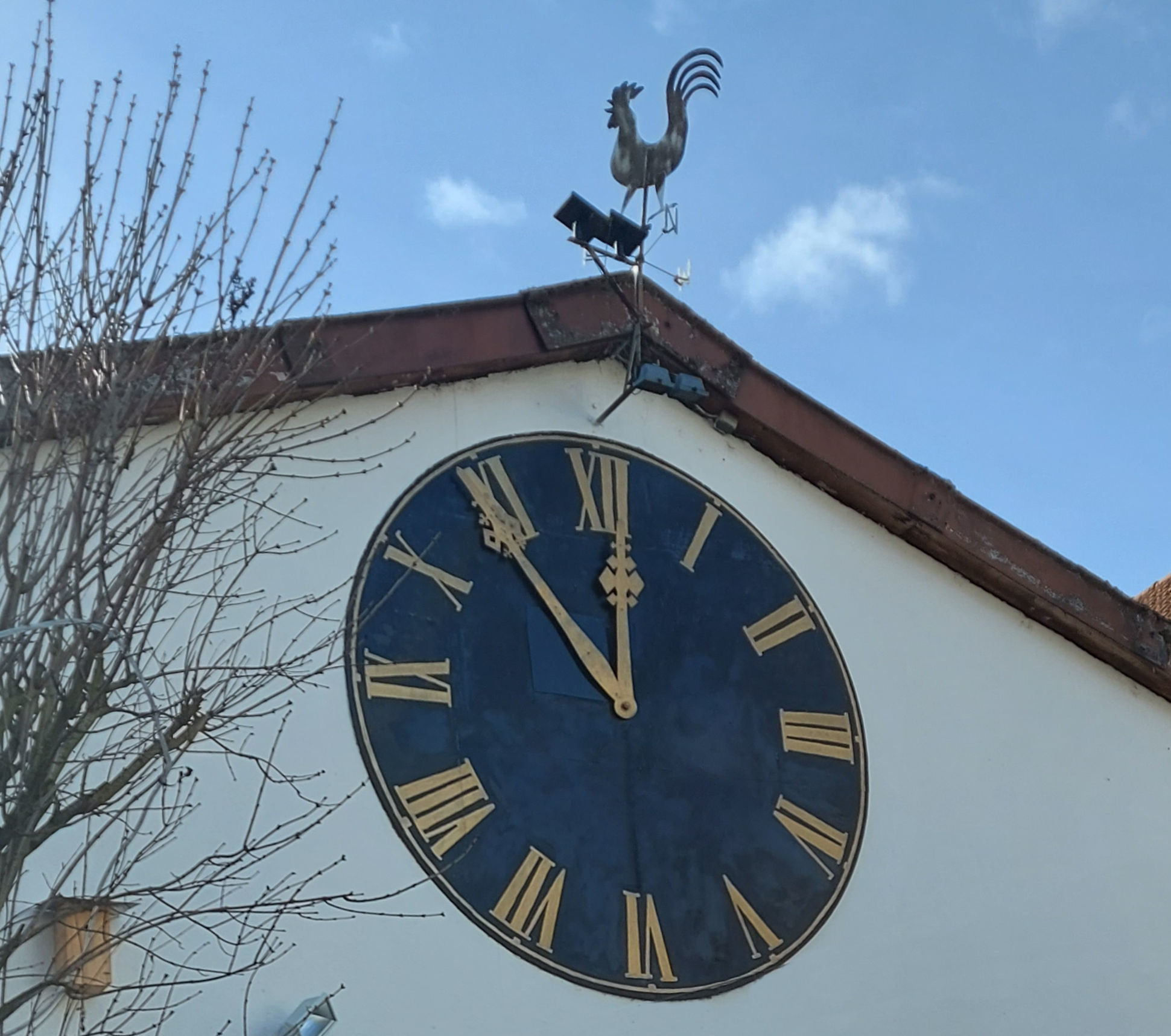Nebenan, in der Eisgasse 6 befand sich die 1732 eingeweihte kleine evangelische Kirche, welche 1848 durch die neue Kirche in der Kreuzgasse ersetzt wurde. Heute befindet sich hier eine Maschinenhalle an deren Wand ein altes Ziffernblatt, welches aus der katholischen Kirche stammt, angebracht ist. Hier ist die Zeit stehen geblieben. Irgendwo ist schließlich immer „5 vor 12“.