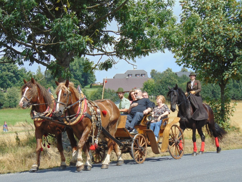 Na oslavě samozřejmě nesměli chybět koníci. Ti byli na Koníkově odjakživa klíčovým pomocníkem při tahání dřeva. Při velké kalamitě v letech 1997 - 98 jich tu bylo na třicet ze všech koutů republiky a pomáhali svážet popadané dřevo. Také se vypráví, že zde žili za války zloději koní - schovávali je v podzemí.