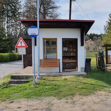 Přímo u kešky je útulná autobusová zastávka s knihobudkou,