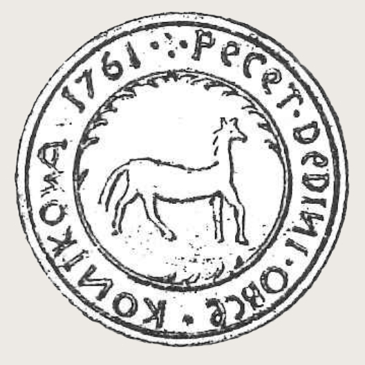 O pár let později v roce 1761 se obec dočkala vlastního pečetidla. Bylo kovové, ve znakovém poli se nacházel běžící koník a nápis na něm byl tohoto znění: PECET · DEDINI · OBCE · KONIKOVA · 1761. Razidlo je uloženo ve fondech Moravského zemského archivu.
